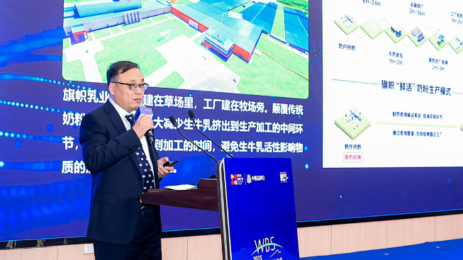 旗帜婴儿乳品股份有限公司副总裁袁建立在大会上以“乳业集群的科技与生态”为题,进行了企业品牌分享。
