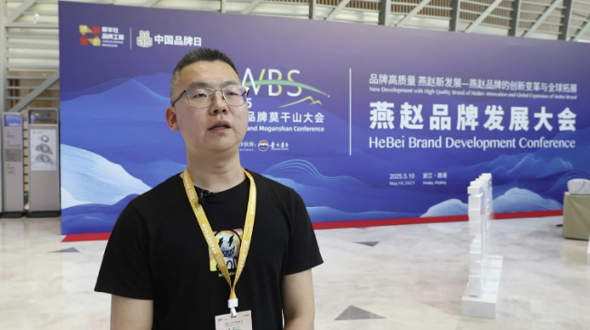2025世界品牌莫干山大会燕赵品牌发展大会期间,参加此次大会的萌兽自行车(河北)有限公司销售经理刘泽鹏接受采访。