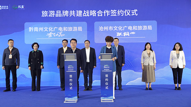 5月9日下午,在德清举行的2025世界品牌莫干山大会——“美酒·美景·美生活”平行论坛上,河北省沧州市文化广电和旅游局进行推介,并与贵州黔南州文旅部门进行了合作签约。